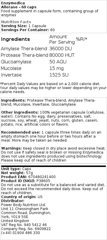 Valige Enzymedica – Allerase looduslike koostisosade ning lihtsa ja efektiivse kasutuse tõttu – ideaalne lahendus neile,kes soovivad oma elurütmi rikastada naturaalsete ingredientidega.
