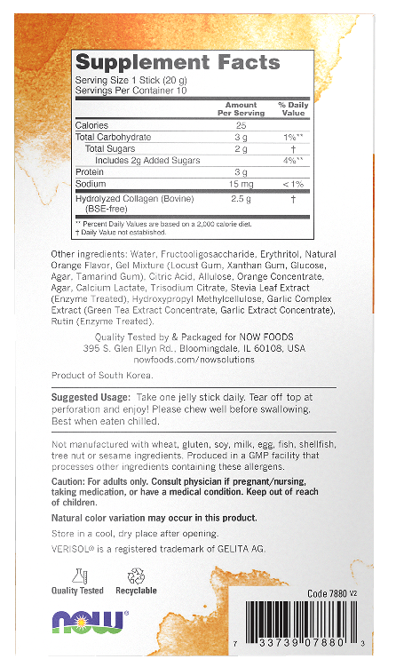 NOW Foods – Collagen Jelly Beauty Complex, Sweet Orange – 10 jelly sticks