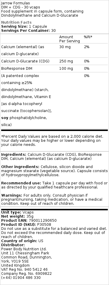 - Annustamine: Iga kapsel sisaldab 100 mg di-indolüülmetaani (DIM) ja 250 mg kaltsium-D-glükaraati (CDG).