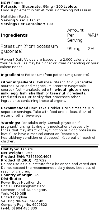 - Tootenimi: NOW Foods – Kaliumglükonaat, puhas pulber