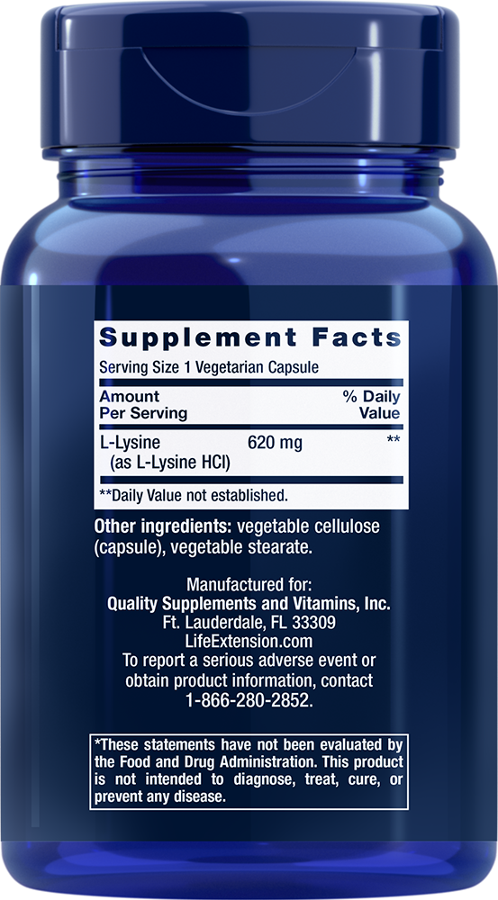 Avasta Life Extension L-Lysine,praktiline toidulisand igapäevaseks kasutamiseks. Iga kapsel sisaldab 620 mg L-lüsiini taimses kapslis, mis teeb sellest loomuliku valiku neile, kes hindavad puhtaid koostisosi.