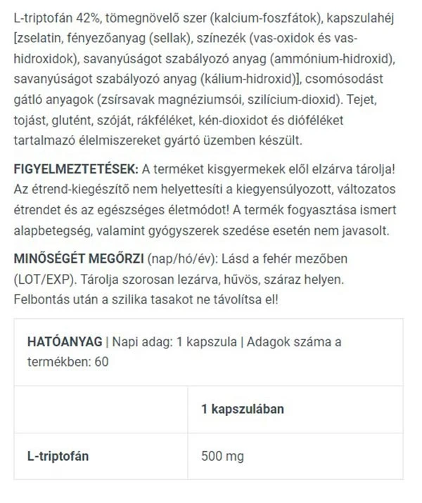 • Sisaldab 60 kapslit L-trüptofaani.