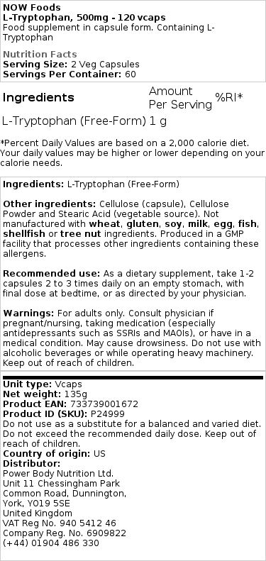 Avasta NOW Foods L-Tryptophan 500 mg, kvaliteetne toidulisand, mis on loodud osana Sinu igapäevasest rutiinist. See toode on valmistatud kõrgekvaliteediliste ja looduslike koostisosadega.