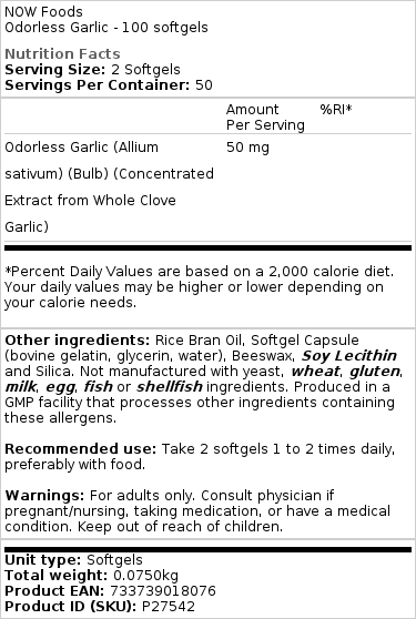 Disse gør tricket for min kone, der ikke kan tåle de almindelige hvidløgsolietilskud. På den negative side forhindrer den medfølgende produktinformation enhver prissammenligning. Hvidløgsolietilskuddene giver en erklæring som “svarende til xxx mg hele fed hvidløg”, og det samme gør nogle andre leverandører af lugtfri hvidløg, men denne giver ikke et sådant sammenligningstal. Forskellige virksomheder bruger forskellige styrker af koncentrat, så manglen på denne information gør offentligheden en stor bjørnetjeneste.