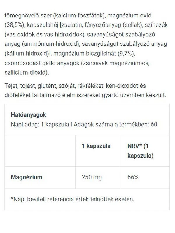 Iga kapsel sisaldab 250 mg magneesiumi.