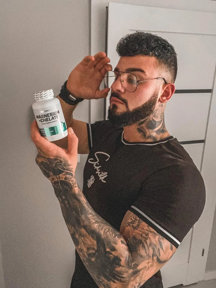 Koostisosad: magneesium, täiteaine (kaltsiumfosfaadid), magneesiumoksiid (38,5%), kapsli kest [želatiin, pealiskate (šellak), värvaine (raudoksiidid ja -hüdroksiidid), happesuse regulaator (ammooniumhüdroksiid), happesuse regulaator (kaaliumhüdroksiid)], magneesiumbisglütsinaat (9,7%), paakumisvastased ained (magneesiumisoolad rasvhapetest, ränidioksiid).