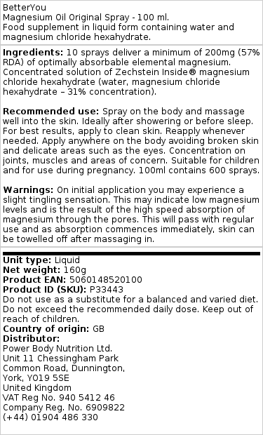BetterYou-mærkets udvalg af produkter, der har til formål at lindre led- og muskelsmerter, er blandt de bedste kvalitets- og mest overkommelige produkter, du kan få. De har forskellige sprays rettet mod forskellige formål, men denne kropsspray er den bedste magnesiumspray til almindelig brug. Dette er genialt til muskelsmerter efter træning, og også til påføring som en skade eller smertelindring. Den er nem at påføre, da du kan spraye på den berørte muskel og massere den ind i huden (også giver din muskel den ekstra fordel ved en hurtig massage), og magnesiumolien absorberes i huden og arbejder direkte for at lindre enhver spænding eller ømhed. Jeg anvender dette på mine knæ efter hver bentræning for at hjælpe mine led, og jeg vil anbefale dette til alle, der har problemer med mobilitet i skuldre, albuer, knæ eller ankler. Det er alligevel ret afslappende, da der gives en kølig prikkende fornemmelse efter påføring. Strålende produkt, god pris og mærke af høj kvalitet.