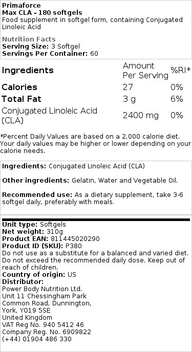 Eco Supplements’i Max CLA pehmekapslid on hoolikalt valitud, et aidata Sul säilitada tasakaalustatud ja tervislikku eluviisi. Toidulisandina võib Max CLA aidata kaasa normaalsele energiavahetusele ning toetada keha üldist heaolu traditsiooniliste kasutusviiside põhjal.