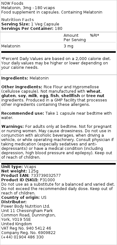 Avasta NOW Foods Melatoniin 3 mg – lihtne ja mugav toidulisand igapäevaseks kasutamiseks.See toode sisaldab melatoniini ja on saadaval praktilises kapslivormis, mis teeb selle tarbimise eriti lihtsaks. Pakend sisaldab 180 kapslit.