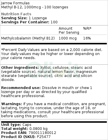 Jarrow Formulas Methyl B-12 er i en god pakke. Jeg køber det til min far, som har diabetes type 2, og hans læge anbefalede ham at bruge det. Vi fandt, at denne var af god smag (da den har citronsmag), og dens størrelse er nem at sluge. Den har en god styrke, og ingredienserne er af høj kvalitet. Det giver heller ingen problemer med mavestofskiftet. Jeg anbefaler det at bruge!