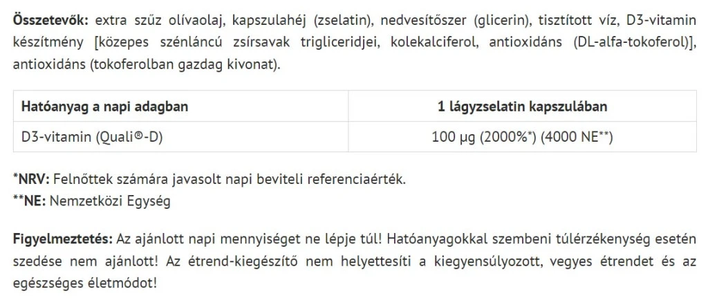 Tarneaeg: 5–7 tööpäeva 🚚Natur Tanya Olive D3-Vitamin – 4000 IU (50 Softgels) on toidulisand, mis sisaldab D-vitamiini. Pakendis on 50 pehmekapslit.
