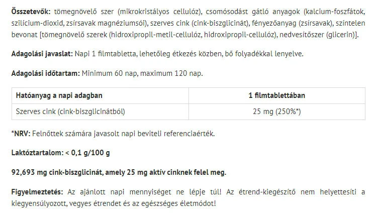 Natur Tanya Zinc Bisglycinate on toidulisand, mis sisaldab 60 tabletti pakendis. Toode on valmistatud tuntud kaubamärgi Natur Tanya poolt.