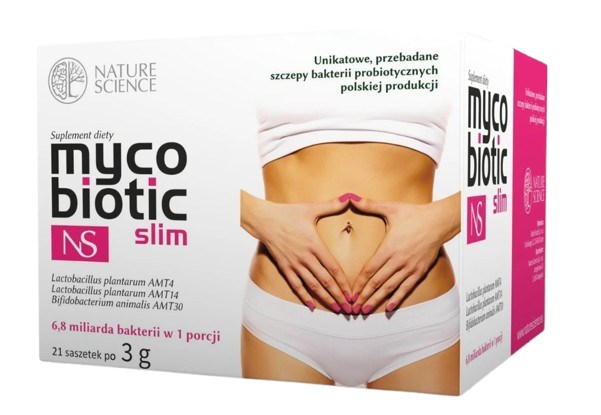 Nature Science – NATURE SCIENCE Mycobiotic Slim NS (63 g) on toote pakendinimetus; tegemist on pulbrilise toidulisandiga, mille üks portsjon on esitatud kui 1 kotike. Toode sisaldab piimhappebakterite tüvesid, erinevaid kuivekstrakte, inuliini ning mitmeid toidulisandi koostisosi.