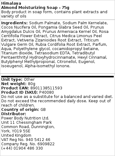 Avasta puhas ja looduslik hooldus Himalaya mandliga niisutava seebiga.See 75g seebitükk on valmistatud kõrgekvaliteedilistest looduslikest koostisosadest, mis on hoolikalt valitud nende puhtuse ja päritolu tõttu.