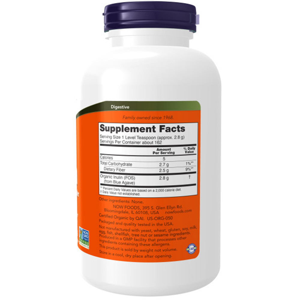 NOW Foods Inulin Powder on kvaliteetne toidulisand, mis sisaldab puhast inuliinipulbrit. Pakendis on 454 g inuliini (FOS), mis on saadud sinisest agaavist.