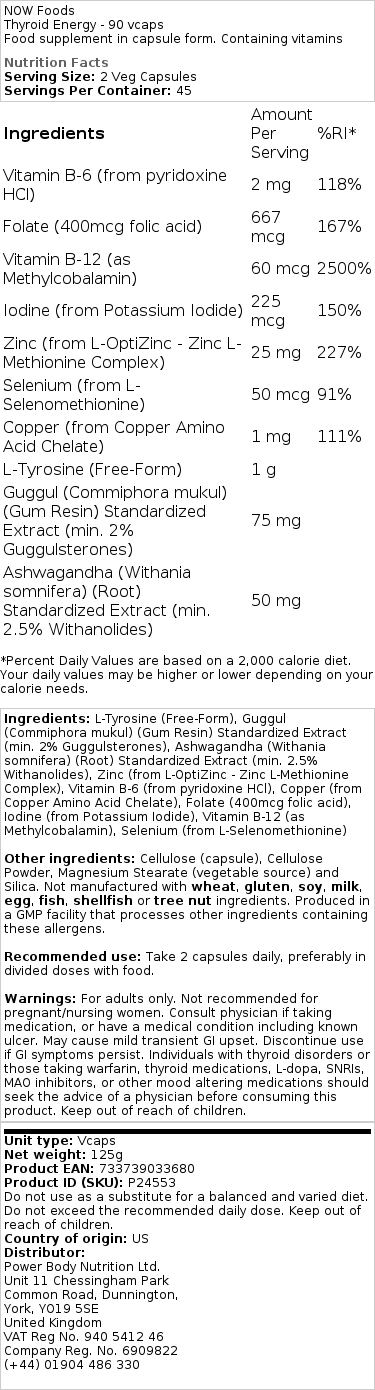- Väited: jood aitab kaasa normaalsele energiavahetusele; L-türosiin on aminohape, mis on oluline mitmete keha funktsioonide jaoks; taimsed ekstraktid on traditsiooniliselt kasutatud üldise heaolu toetamiseks.