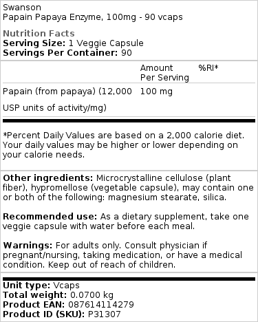 • Sisaldab 100 mg papaiini kapsli kohta.