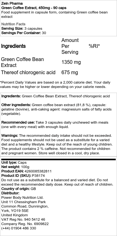 Grøn kaffebønneekstrakt, 450 mg – 90 kapsler on looduslik toidulisand, mis sisaldab igas kapslis 450 mg rohelise kohvi ekstrakti. See toode on mõeldud igapäevaseks kasutamiseks ning pakub mugavat viisi roheliste kohvioa omaduste lisamiseks oma elustiili.