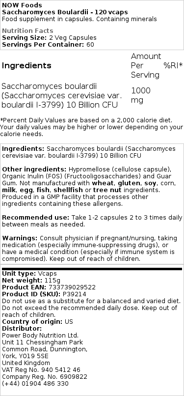 Saccharomyces Boulardii er en type probiotisk gær. Det er nyttigt for visse typer diarré og fordøjelsesbesvær, såsom antibiotikarelateret diarré og rejsendes diarré. Det koloniserer i tarmene og beskytter mikrobiomet mod patogener. Der er flere resultater fra kliniske forsøg tilgængelige online, hvis du ønsker mere information. Jeg har brugt det til Giardiasis og for at beskytte tarmen, når jeg tager antibiotika. Det var meget effektivt. Fordøjelsen gik tilbage til normal i løbet af et par dage, og det forårsagede ikke forstoppelse. Kapselstørrelsen er ikke for stor. Det var nemt at sluge med lidt vand på tom mave (for maksimal absorption) og efterlod ingen eftersmag. Produkterne fra NOW er normalt af høj kvalitet med gode råvarer og det er ingen undtagelse. Pakken med dette tillæg er ikke for stor (den er høj og smal), og den har en flip-hætte. Jeg vælger at opbevare den i køleskabet, for at bevare maksimal styrke. Det eneste problem, jeg har med dette produkt, er prisen. Jeg synes, det er lidt dyrt. Sammenfattende finder jeg dette produkt gavnligt, og jeg anbefaler det.