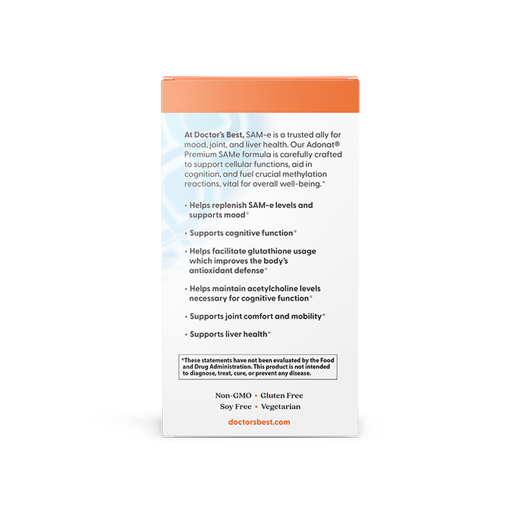 Toidulisand Doctor’s Best SAM-e on loodud kvaliteeti ja looduslikke koostisosi silmas pidades. See lihtne ja puhas lisand on suurepärane osa teie igapäevasest rutiinist.