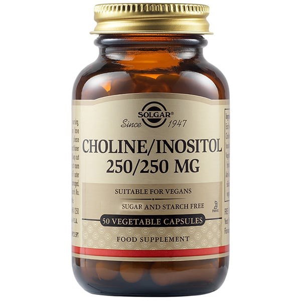 Solgar SOLGAR Choline/Inositol 250 mg on toidulisand kapslites, mis sisaldab koliini ja inositooli. Toode on esitatud kaubamärgi Solgar nime all ja sobib kapslivormis müügiks.