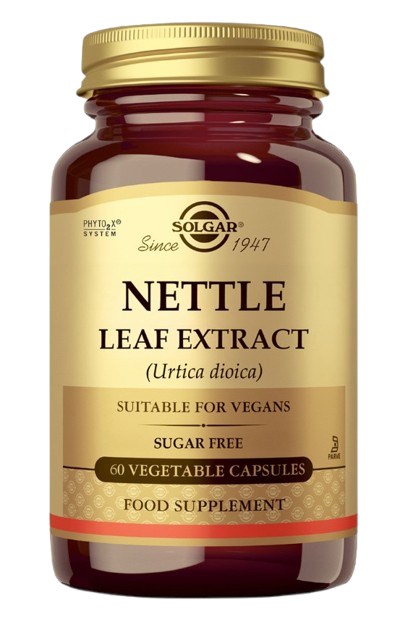 Solgar SOLGAR Nettle Leaf Extract, pakendis 60 kapslit, on toidulisand, mis sisaldab nõgese (Urtica) lehe ekstraktiga seotud koostisosi kapslivormis. Tootja: Solgar.