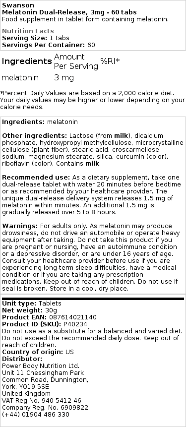 - Looduslikult esinev hormoon: sisaldab kehas looduslikult esinevat melatoniini.