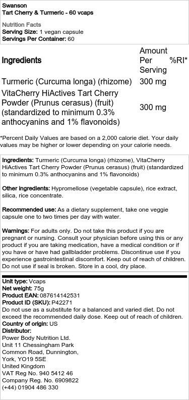 - Väited: Kurkum on traditsiooniliselt kasutatud oma antioksüdantsete omaduste tõttu; Hapukirsid aitavad kaasa normaalsele immuunsüsteemi talitlusele ning vähendavad väsimust ja kurnatust.