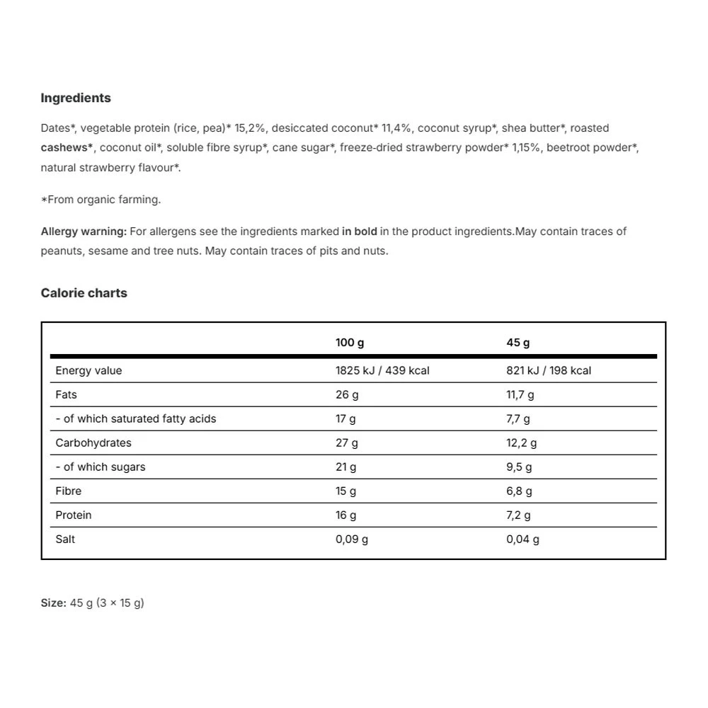Vilgain Plant Protein Energy Balls BIO Strawberry coconut on maitsev toidulisand, mis on saadaval 45 g pakendis. Tegemist on Vilgain kaubamärgi tootega.