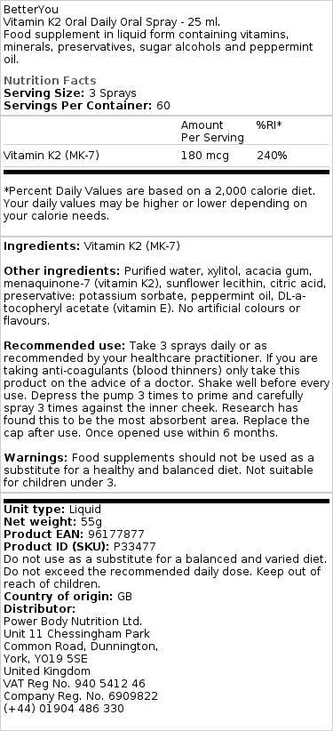 Kasuta BetterYou Vitamin K2 Oral Spray’d osana oma tervislikust eluviisist – see on täiuslik valik neile,kes hindavad kvaliteeti ja mugavust.