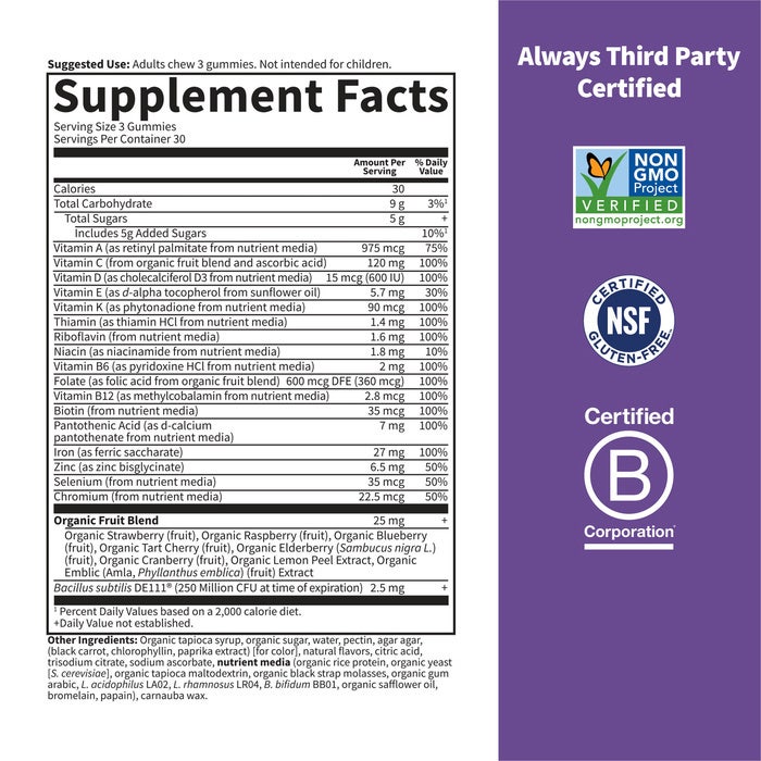 Garden of Life’i toidulisandid on hoolikalt valitud, et toetada tasakaalustatud ja tervislikku eluviisi. Need gummikommid mitte ainult ei maitse hästi,vaid on ka praktiline lahendus neile,kes soovivad tagada piisava raua ja folaadi saamist igapäevaselt.Ideaalne täiendus sinu tervislikule rutiinile!