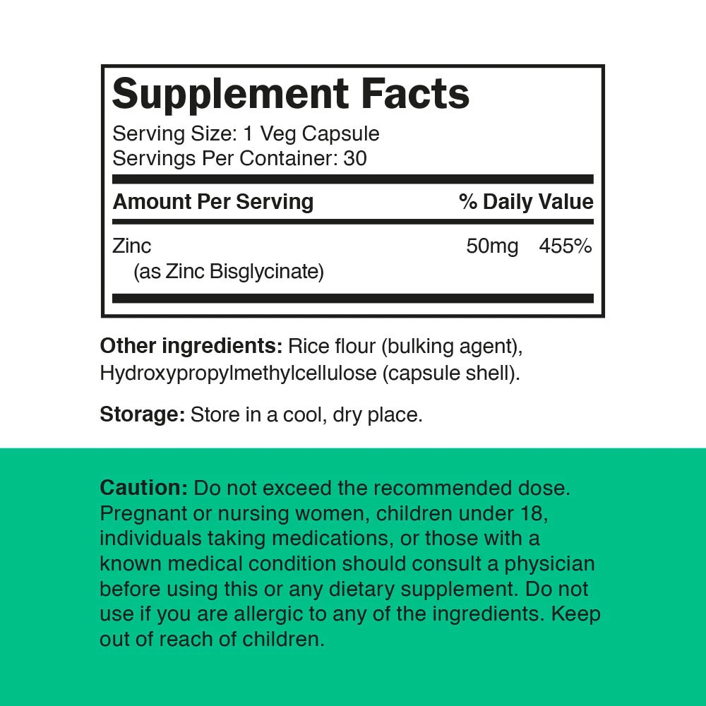 Tarneaeg: 5–7 tööpäeva 🚚Vitamin360 Zinc Bisglycinate 50 mg on toidulisand, mis sisaldab tsinki bisglütsinaadi kujul.Pakendis on 30 taimset kapslit.