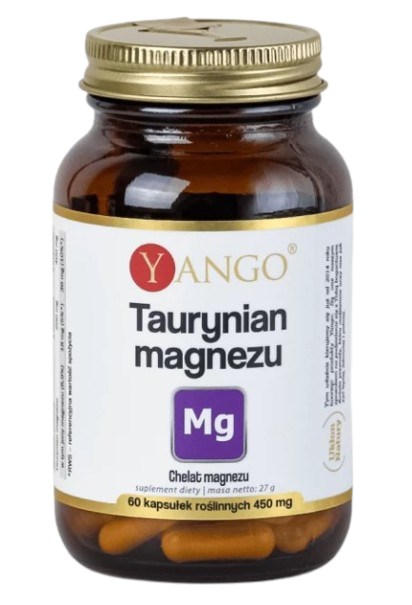 Yango – YANGO Magnesium taurate (60 caps) on toidulisand, mis sisaldab magneesiumtauraati. Pakend sisaldab 60 kapslit; netokaal 29,4 g. Kapslid on valmistatud taimsetest tselluloosist.